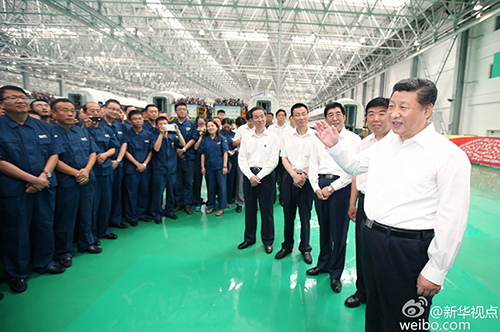 習(xí)近平首先來到中國中車長春軌道客車股份有限公司。公司前身為長春客車廠,始建于1954年,是國家“一五”重點(diǎn)建設(shè)項(xiàng)目之一。20023月改制為股份公司。