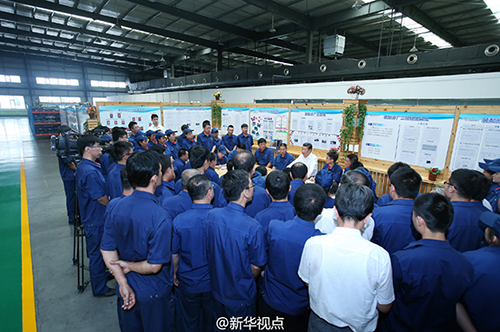 在裝配分廠一班和二班的班組園地,總書記同企業(yè)干部職工圍坐一起進(jìn)行座談。習(xí)近平指出,中國夢具體到工業(yè)戰(zhàn)線就是加快推進(jìn)新型工業(yè)化。把制造業(yè)搞上去,創(chuàng)新驅(qū)動發(fā)展是核心。我們要向全社會發(fā)出明確信息:搞好經(jīng)濟(jì)、搞好企業(yè)、搞好國有企業(yè),把實(shí)體經(jīng)濟(jì)抓上去。